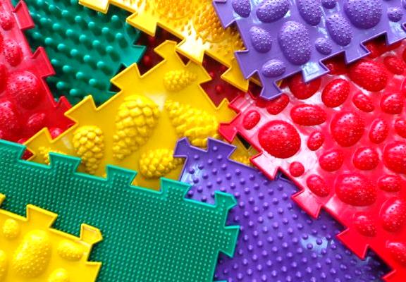 Максимальный эффект от применения массажных ковриков достигается за счёт разнообразия фактуры и рельефа, а также чередование мягких и жёстких